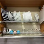Casa Sofia ferielejlighed ligger i hjertet af Napoli og har et samlet areal på 40 m^2. Der er et køleskab og en ovn i et køkken .